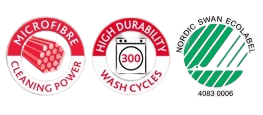 Materialul permite utilizarea atat umeda, cat si uscata, sau in sistem spray, oferind flexibilitate in procesele operationale. Laveta este rezistenta si a fost testata pentru peste 300 de cicluri de spalare la 60°C, mentinandu-si performantele in timp, ceea ce o recomanda pentru utilizare intensiva in medii profesionale.