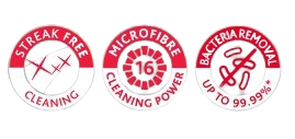 Datorită acestei structuri, laveta permite o curățare eficientă chiar dintr-o singură ștergere, fiind ideală în special pentru suprafețe lucioase precum sticlă sau inox.
